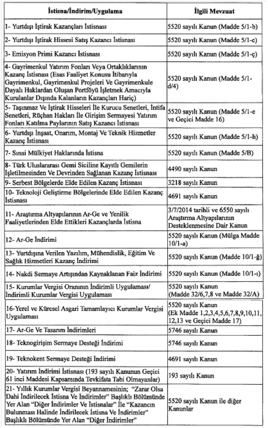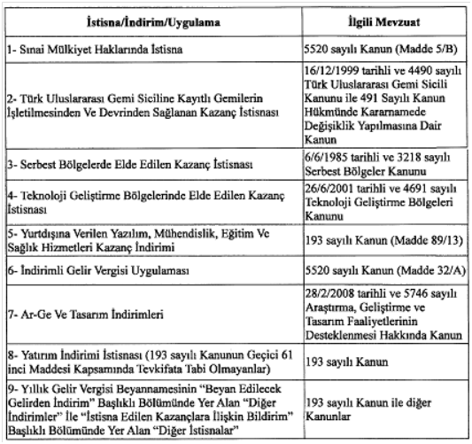 Kurumlar vergisi mükelleflerinin kurumlar vergisi beyannamelerinde yer alan aşağıdaki istisna ve indirimler için YMM tasdiki zorunlu hale getirilmiştir: